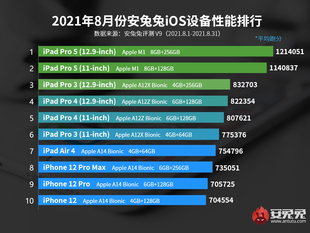 iPadPro2024跑分270万!近日,安兔兔官方微博公布了一款新设备的跑分信息,总分达到274万。根据数据分析,极有可能是刚刚发布的iPadPro2024。 安兔兔统计显示,iPadPro2024的CPU分数为723817分,GPU分数达到1120143分,性能提升非常明显,也可以看出M4芯片的性能强大。 但应该注意的是,M4装备...